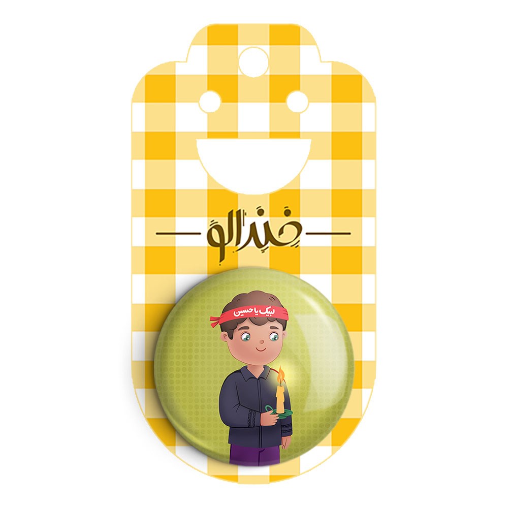 پیکسل 44 میلی متری کودکانه محرم و اربعین امام حسین خندالو با روکش سلفون حرارتی مات مخملی ضدخش و قطعه پشتی رنگی تولید شده است.پلاستیکی پشت پیکسل با سوزن یک تکه ثابت و بدون لغزش و جا به جایی، ایستایی بسیار بهتری نسبت به پشتی فلزی پیکسل دارند که این مهم در تولید این محصول نیز رعایت شده است.