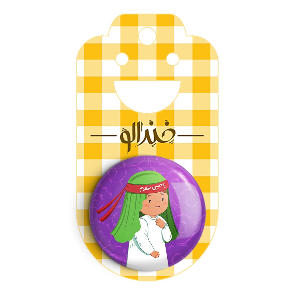 پیکسل 44 میلی متری کودکانه محرم و اربعین امام حسین خندالو با روکش سلفون حرارتی مات مخملی ضدخش و قطعه پشتی رنگی تولید شده است.پلاستیکی پشت پیکسل با سوزن یک تکه ثابت و بدون لغزش و جا به جایی، ایستایی بسیار بهتری نسبت به پشتی فلزی پیکسل دارند که این مهم در تولید این محصول نیز رعایت شده است.