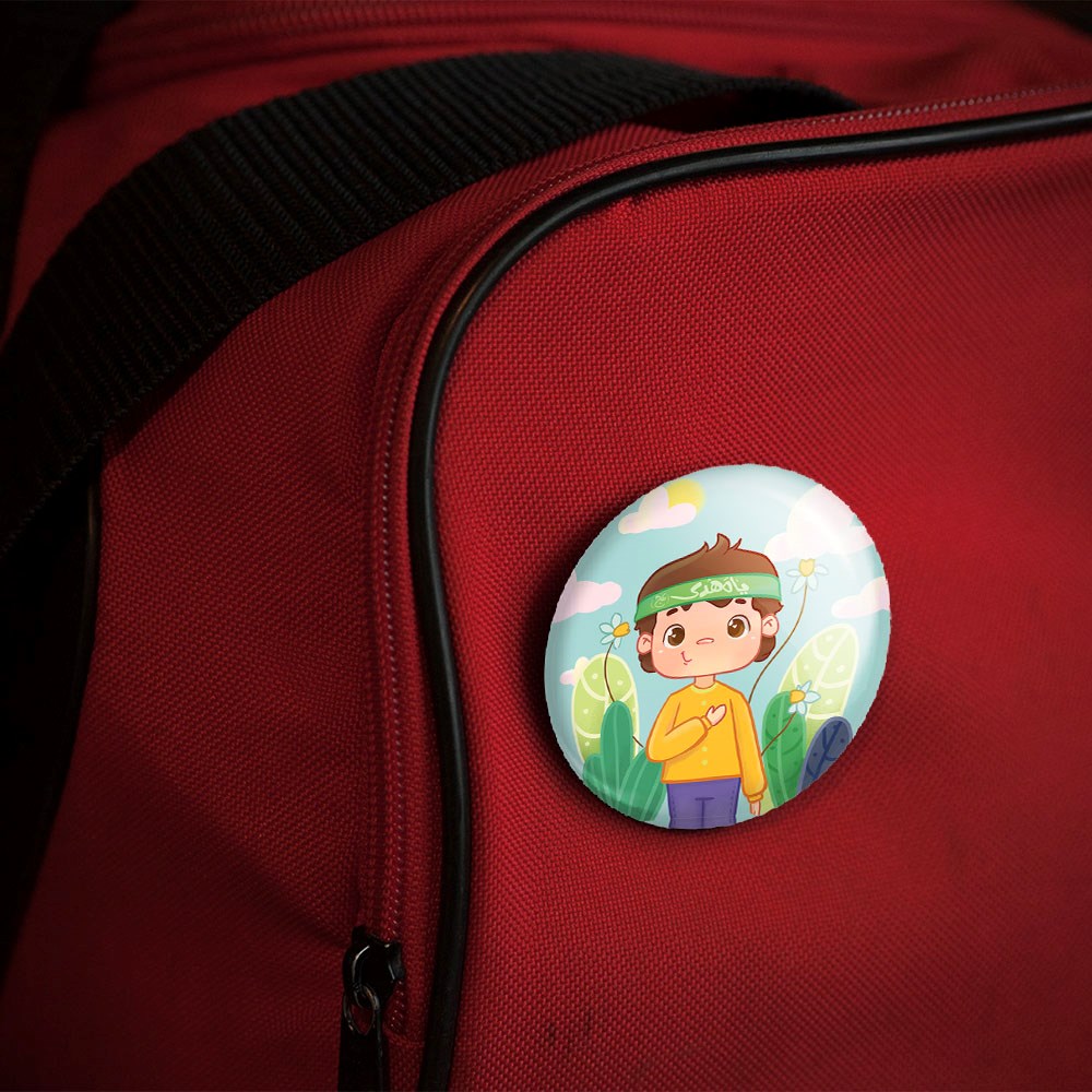 پیکسل 44 میلی متری کودکانه محرم و اربعین امام حسین خندالو با روکش سلفون حرارتی مات مخملی ضدخش و قطعه پشتی رنگی تولید شده است.پلاستیکی پشت پیکسل با سوزن یک تکه ثابت و بدون لغزش و جا به جایی، ایستایی بسیار بهتری نسبت به پشتی فلزی پیکسل دارند که این مهم در تولید این محصول نیز رعایت شده است.