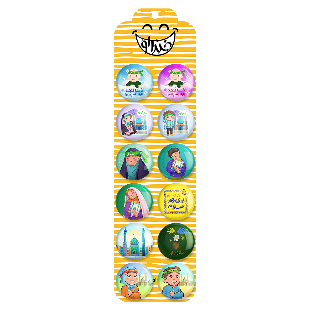 پک 12 عددی پیکسل خندالو طرح کودکانه نیمه شعبان با روکش سلفون حرارتی براق ضدخش و قطعه پشتی رنگی تولید شده است. قطعات پشتی از میان 6 رنگ سفید، مشکی، صورتی، زرد، آبی و قرمز که با توجه به نوع و رنگبندی طرح روی پیکسل انتخاب شده اند تولید می شود و در هر بسته بندی مطابق عکس محصول می باشد. قطعات پلاستیکی پشت پیکسل با سوزن یک تکه ثابت و بدون لغزش و جا به جایی، ایستایی بسیار بهتری نسبت به پشتی فلزی پیکسل دارند که این مهم در تولید این محصول نیز رعایت شده است. چاپ پیکسل طرح کودکانه نیمه شعبان بسته ۱۲ عددی نیز با دستگاه های استاندارد و با بهترین سطح کیفی صورت گرفته و طرح با شفافیتی مثال زدنی و با سلفونی بدون شکست نور بر روی پیکسل نقش بسته است.