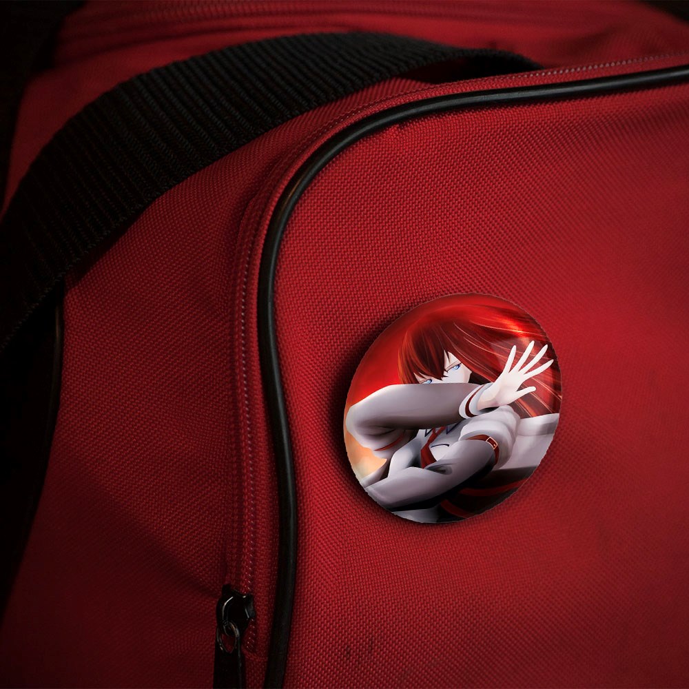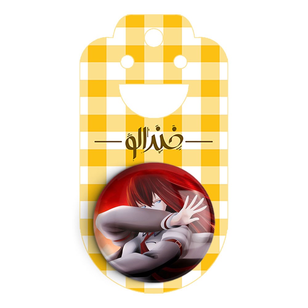 پیکسل 44 میلی متری کوریسو ماکیسه انیمه اشتاینز گیت خندالو با روکش سلفون حرارتی مات مخملی ضدخش و قطعه پشتی رنگی تولید شده است.پلاستیکی پشت پیکسل با سوزن یک تکه ثابت و بدون لغزش و جا به جایی، ایستایی بسیار بهتری نسبت به پشتی فلزی پیکسل دارند که این مهم در تولید این محصول نیز رعایت شده است.
