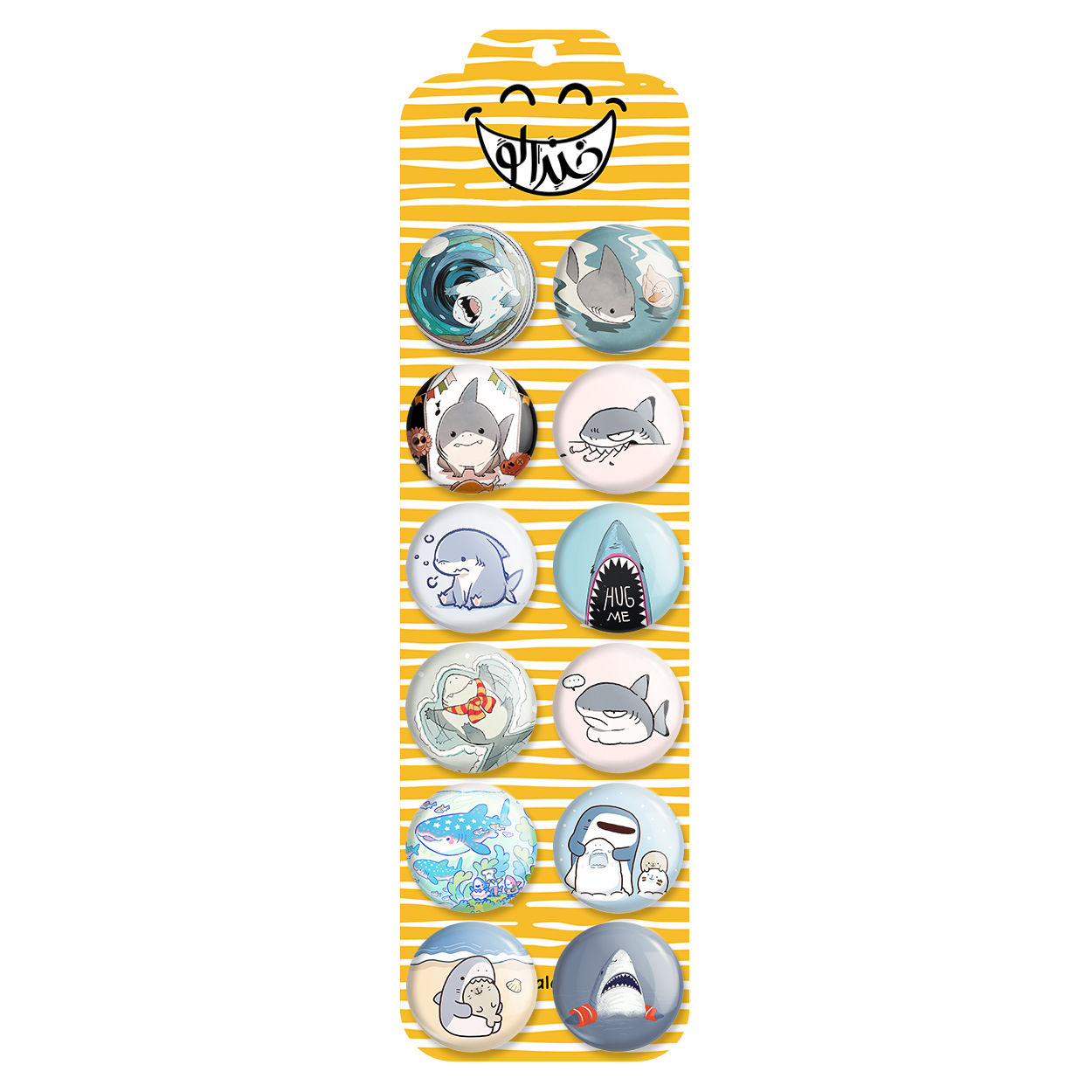 پک 12 عددی پیکسل خندالو طرح کوسه با روکش سلفون حرارتی براق ضدخش و قطعه پشتی رنگی تولید شده است. قطعات پشتی از میان 6 رنگ سفید، مشکی، صورتی، زرد، آبی و قرمز که با توجه به نوع و رنگبندی طرح روی پیکسل انتخاب شده اند تولید می شود و در هر بسته بندی مطابق عکس محصول می باشد. قطعات پلاستیکی پشت پیکسل با سوزن یک تکه ثابت و بدون لغزش و جا به جایی، ایستایی بسیار بهتری نسبت به پشتی فلزی پیکسل دارند که این مهم در تولید این محصول نیز رعایت شده است. چاپ پیکسل طرح کوسه بسته ۱۲ عددی نیز با دستگاه های استاندارد و با بهترین سطح کیفی صورت گرفته و طرح با شفافیتی مثال زدنی و با سلفونی بدون شکست نور بر روی پیکسل نقش بسته است.