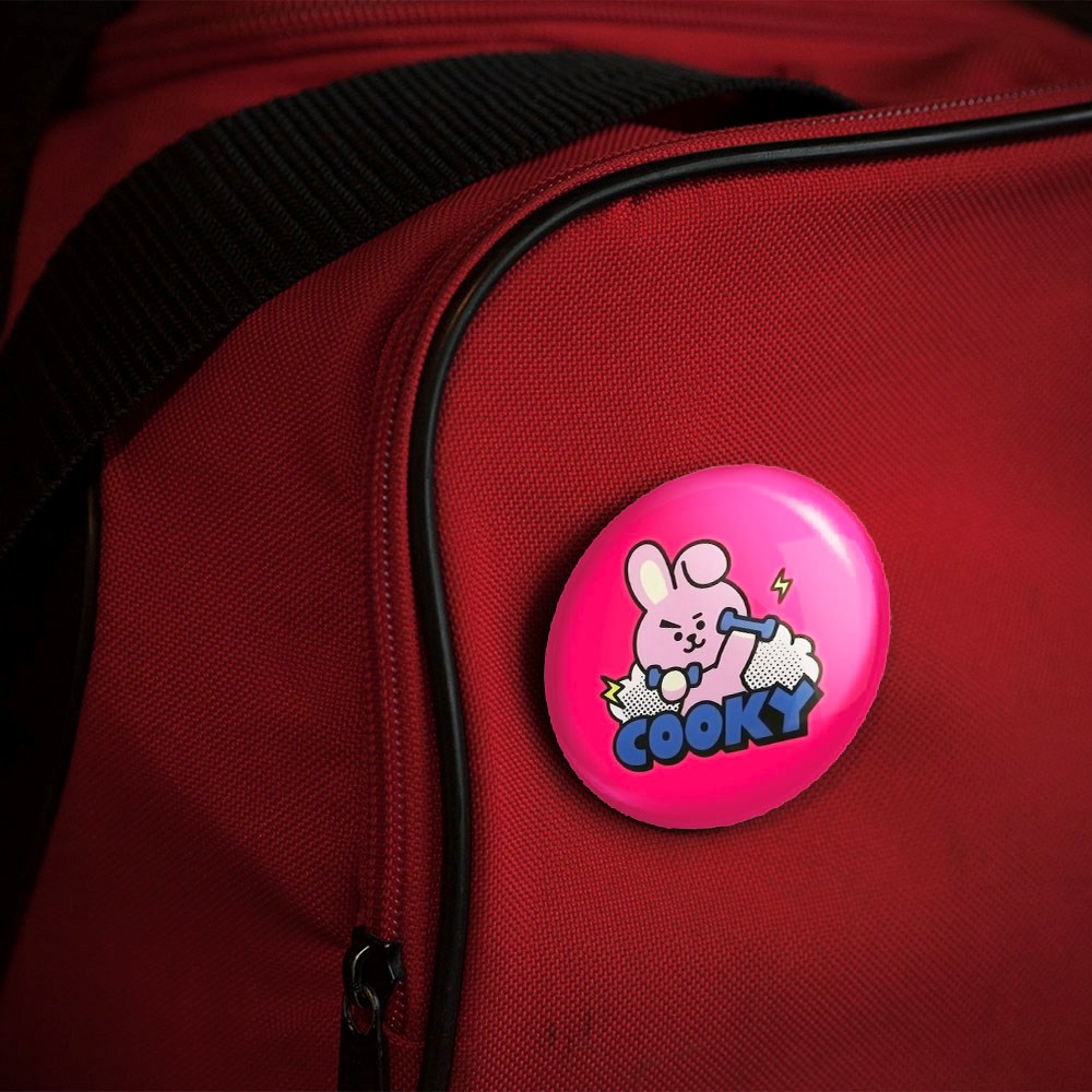 پیکسل 44 میلی متری کوکی BT21 Cooky خندالو با روکش سلفون حرارتی مات مخملی ضدخش و قطعه پشتی رنگی تولید شده است.پلاستیکی پشت پیکسل با سوزن یک تکه ثابت و بدون لغزش و جا به جایی، ایستایی بسیار بهتری نسبت به پشتی فلزی پیکسل دارند که این مهم در تولید این محصول نیز رعایت شده است.