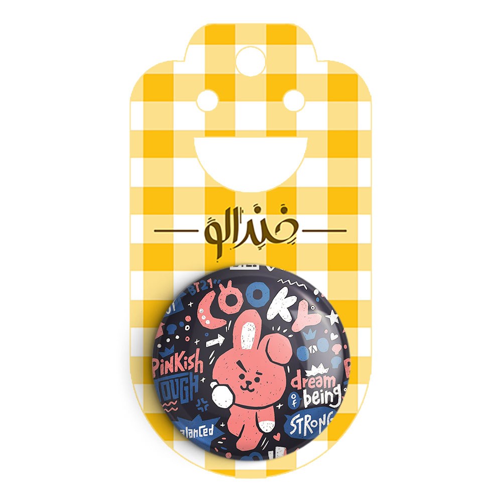 پیکسل 44 میلی متری کوکی BT21 Cooky خندالو با روکش سلفون حرارتی مات مخملی ضدخش و قطعه پشتی رنگی تولید شده است.پلاستیکی پشت پیکسل با سوزن یک تکه ثابت و بدون لغزش و جا به جایی، ایستایی بسیار بهتری نسبت به پشتی فلزی پیکسل دارند که این مهم در تولید این محصول نیز رعایت شده است.