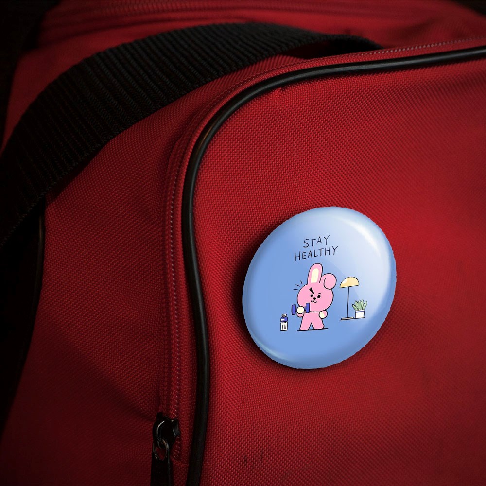 پیکسل 44 میلی متری کوکی BT21 Cooky خندالو با روکش سلفون حرارتی مات مخملی ضدخش و قطعه پشتی رنگی تولید شده است.پلاستیکی پشت پیکسل با سوزن یک تکه ثابت و بدون لغزش و جا به جایی، ایستایی بسیار بهتری نسبت به پشتی فلزی پیکسل دارند که این مهم در تولید این محصول نیز رعایت شده است.