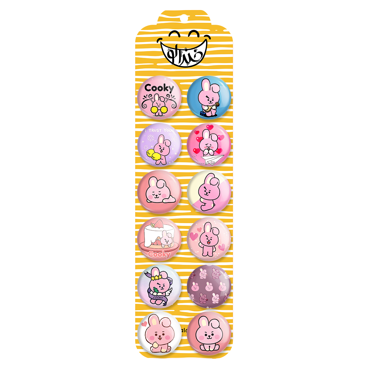پک 12 عددی پیکسل خندالو طرح کوکی BT21 Cooky با روکش سلفون حرارتی براق ضدخش و قطعه پشتی رنگی تولید شده است. قطعات پشتی از میان 6 رنگ سفید، مشکی، صورتی، زرد، آبی و قرمز که با توجه به نوع و رنگبندی طرح روی پیکسل انتخاب شده اند تولید می شود و در هر بسته بندی مطابق عکس محصول می باشد. قطعات پلاستیکی پشت پیکسل با سوزن یک تکه ثابت و بدون لغزش و جا به جایی، ایستایی بسیار بهتری نسبت به پشتی فلزی پیکسل دارند که این مهم در تولید این محصول نیز رعایت شده است. چاپ پیکسل طرح کوکی BT21 Cooky بسته ۱۲ عددی نیز با دستگاه های استاندارد و با بهترین سطح کیفی صورت گرفته و طرح با شفافیتی مثال زدنی و با سلفونی بدون شکست نور بر روی پیکسل نقش بسته است.