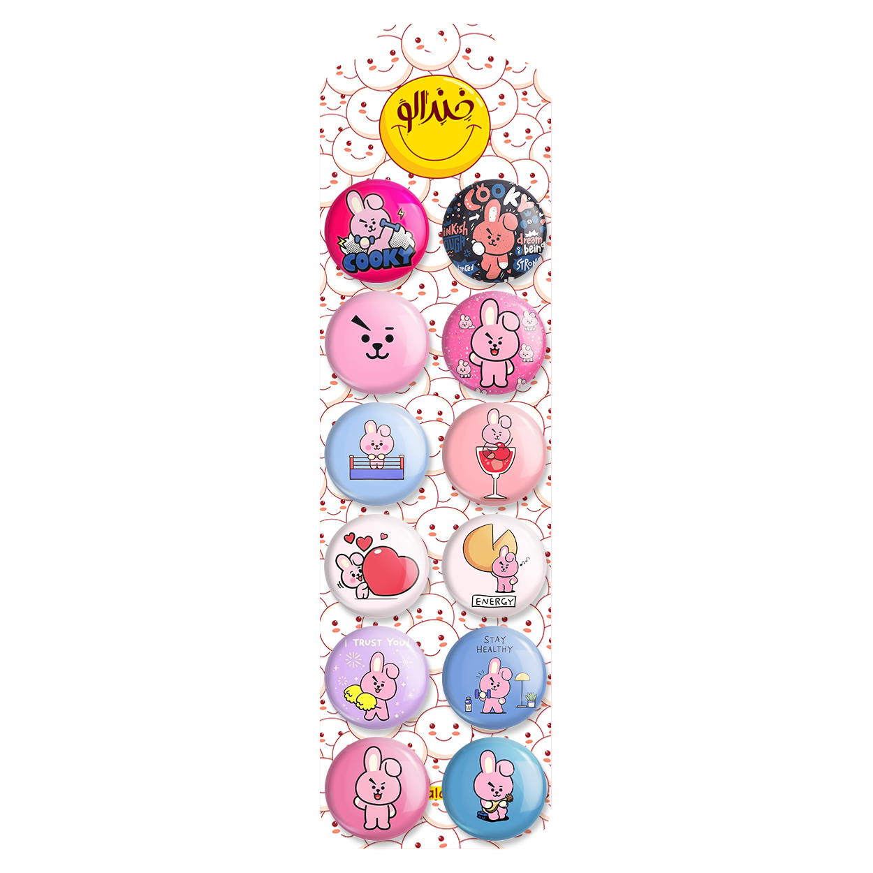 پک 12 عددی پیکسل خندالو طرح کوکی BT21 Cooky با روکش سلفون حرارتی براق ضدخش و قطعه پشتی رنگی تولید شده است. قطعات پشتی از میان 6 رنگ سفید، مشکی، صورتی، زرد، آبی و قرمز که با توجه به نوع و رنگبندی طرح روی پیکسل انتخاب شده اند تولید می شود و در هر بسته بندی مطابق عکس محصول می باشد. قطعات پلاستیکی پشت پیکسل با سوزن یک تکه ثابت و بدون لغزش و جا به جایی، ایستایی بسیار بهتری نسبت به پشتی فلزی پیکسل دارند که این مهم در تولید این محصول نیز رعایت شده است.