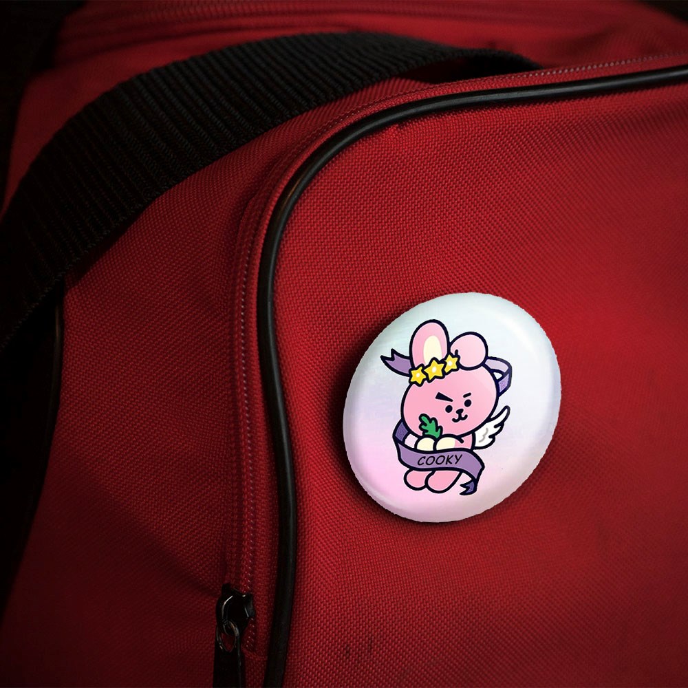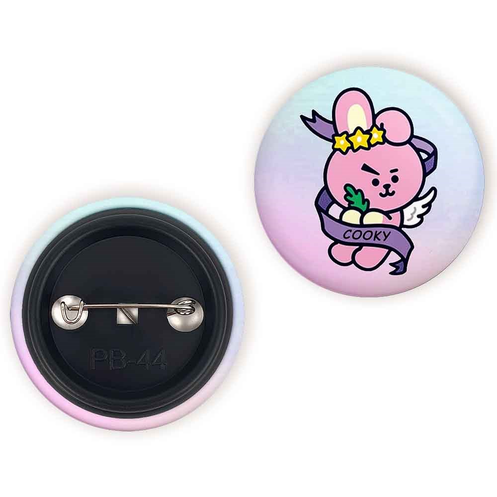 پیکسل 44 میلی متری کوکی BT21 Cooky خندالو با روکش سلفون حرارتی مات مخملی ضدخش و قطعه پشتی رنگی تولید شده است.پلاستیکی پشت پیکسل با سوزن یک تکه ثابت و بدون لغزش و جا به جایی، ایستایی بسیار بهتری نسبت به پشتی فلزی پیکسل دارند که این مهم در تولید این محصول نیز رعایت شده است.