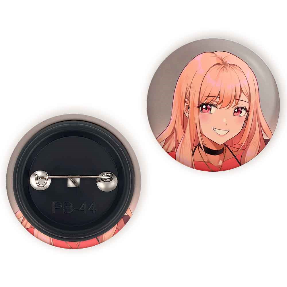 پیکسل 44 میلی متری کیتاگاوا انیمه مای درس آپ دارلینگ خندالو با روکش سلفون حرارتی مات مخملی ضدخش و قطعه پشتی رنگی تولید شده است.پلاستیکی پشت پیکسل با سوزن یک تکه ثابت و بدون لغزش و جا به جایی، ایستایی بسیار بهتری نسبت به پشتی فلزی پیکسل دارند که این مهم در تولید این محصول نیز رعایت شده است.