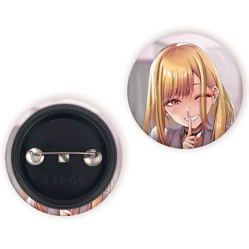پیکسل 44 میلی متری کیتاگاوا انیمه مای درس آپ دارلینگ خندالو با روکش سلفون حرارتی مات مخملی ضدخش و قطعه پشتی رنگی تولید شده است.پلاستیکی پشت پیکسل با سوزن یک تکه ثابت و بدون لغزش و جا به جایی، ایستایی بسیار بهتری نسبت به پشتی فلزی پیکسل دارند که این مهم در تولید این محصول نیز رعایت شده است.