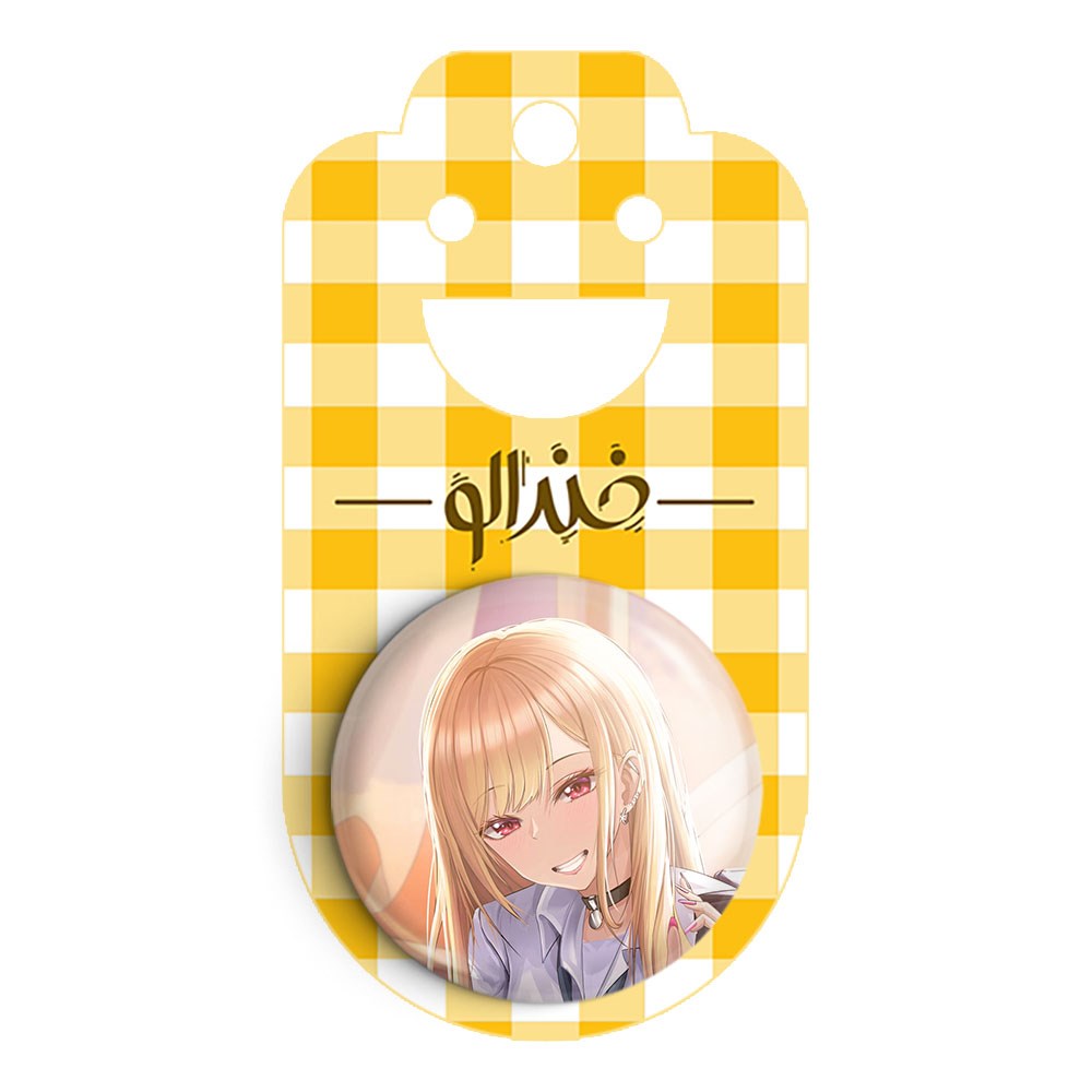 پیکسل 44 میلی متری کیتاگاوا انیمه مای درس آپ دارلینگ خندالو با روکش سلفون حرارتی مات مخملی ضدخش و قطعه پشتی رنگی تولید شده است.پلاستیکی پشت پیکسل با سوزن یک تکه ثابت و بدون لغزش و جا به جایی، ایستایی بسیار بهتری نسبت به پشتی فلزی پیکسل دارند که این مهم در تولید این محصول نیز رعایت شده است.