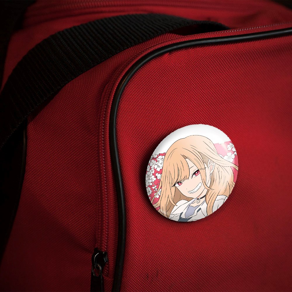 پیکسل 44 میلی متری کیتاگاوا انیمه مای درس آپ دارلینگ خندالو با روکش سلفون حرارتی مات مخملی ضدخش و قطعه پشتی رنگی تولید شده است.پلاستیکی پشت پیکسل با سوزن یک تکه ثابت و بدون لغزش و جا به جایی، ایستایی بسیار بهتری نسبت به پشتی فلزی پیکسل دارند که این مهم در تولید این محصول نیز رعایت شده است.