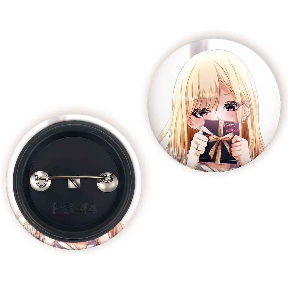 پیکسل 44 میلی متری کیتاگاوا انیمه مای درس آپ دارلینگ خندالو با روکش سلفون حرارتی مات مخملی ضدخش و قطعه پشتی رنگی تولید شده است.پلاستیکی پشت پیکسل با سوزن یک تکه ثابت و بدون لغزش و جا به جایی، ایستایی بسیار بهتری نسبت به پشتی فلزی پیکسل دارند که این مهم در تولید این محصول نیز رعایت شده است.