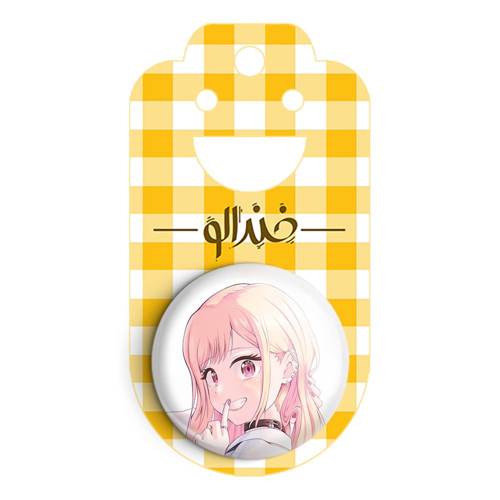پیکسل 44 میلی متری کیتاگاوا انیمه مای درس آپ دارلینگ خندالو با روکش سلفون حرارتی مات مخملی ضدخش و قطعه پشتی رنگی تولید شده است.پلاستیکی پشت پیکسل با سوزن یک تکه ثابت و بدون لغزش و جا به جایی، ایستایی بسیار بهتری نسبت به پشتی فلزی پیکسل دارند که این مهم در تولید این محصول نیز رعایت شده است.