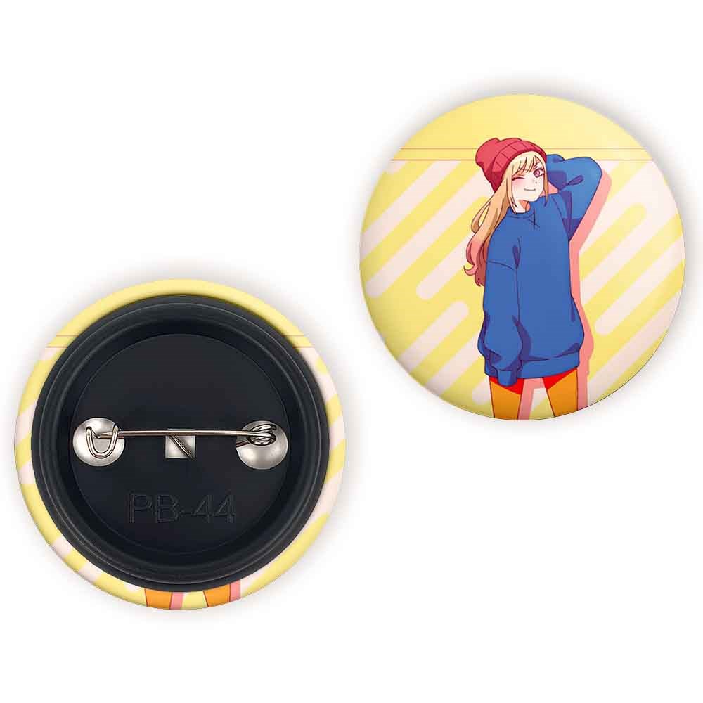 پیکسل 44 میلی متری کیتاگاوا انیمه مای درس آپ دارلینگ خندالو با روکش سلفون حرارتی مات مخملی ضدخش و قطعه پشتی رنگی تولید شده است.پلاستیکی پشت پیکسل با سوزن یک تکه ثابت و بدون لغزش و جا به جایی، ایستایی بسیار بهتری نسبت به پشتی فلزی پیکسل دارند که این مهم در تولید این محصول نیز رعایت شده است.