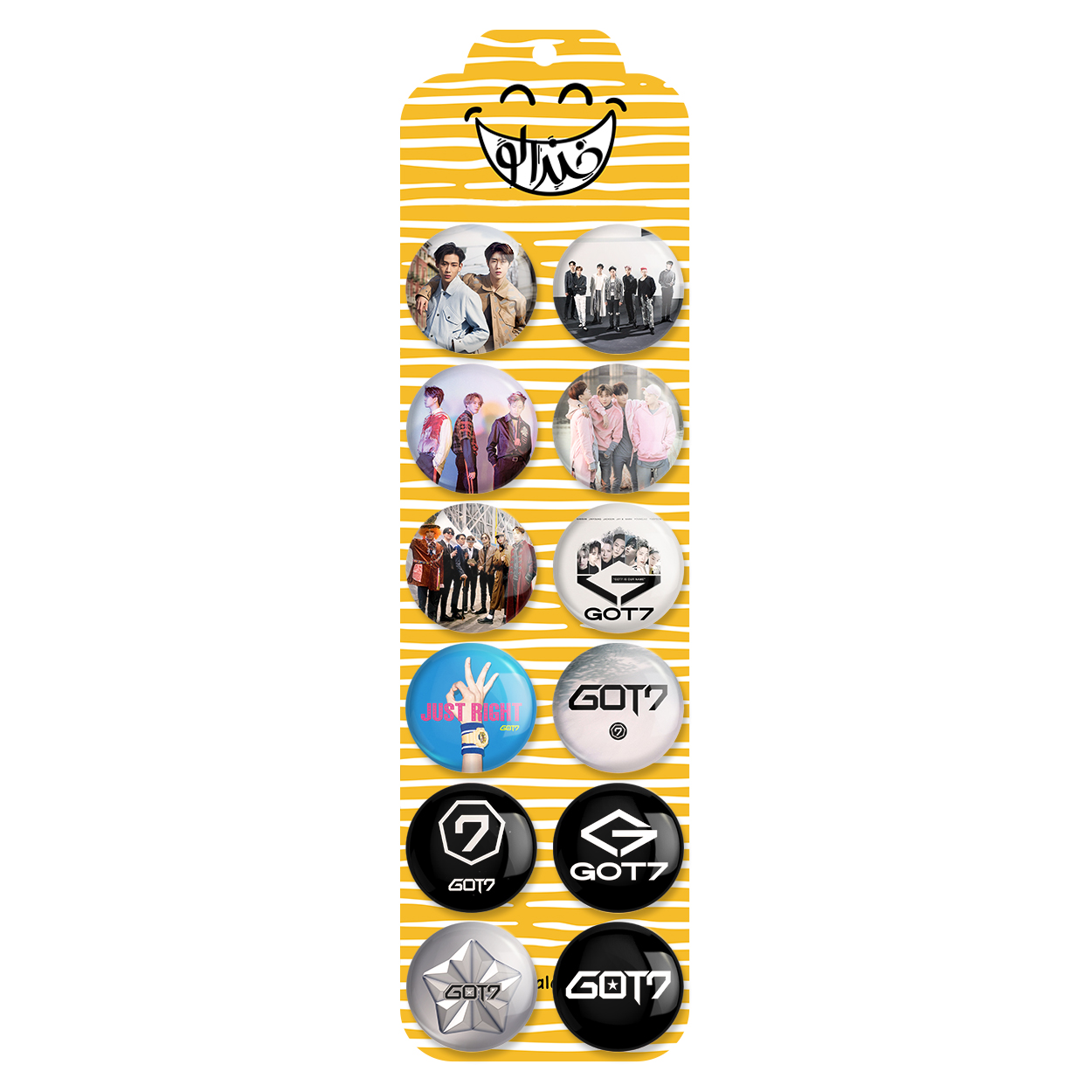 پک 12 عددی پیکسل خندالو طرح گات سون Got 7 با روکش سلفون حرارتی براق ضدخش و قطعه پشتی رنگی تولید شده است. قطعات پشتی از میان 6 رنگ سفید، مشکی، صورتی، زرد، آبی و قرمز که با توجه به نوع و رنگبندی طرح روی پیکسل انتخاب شده اند تولید می شود و در هر بسته بندی مطابق عکس محصول می باشد. قطعات پلاستیکی پشت پیکسل با سوزن یک تکه ثابت و بدون لغزش و جا به جایی، ایستایی بسیار بهتری نسبت به پشتی فلزی پیکسل دارند که این مهم در تولید این محصول نیز رعایت شده است. چاپ پیکسل طرح گات سون Got 7 بسته ۱۲ عددی نیز با دستگاه های استاندارد و با بهترین سطح کیفی صورت گرفته و طرح با شفافیتی مثال زدنی و با سلفونی بدون شکست نور بر روی پیکسل نقش بسته است.