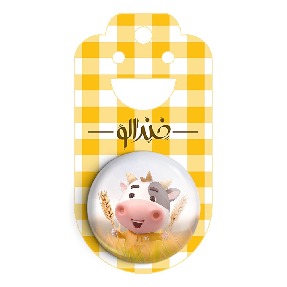 پیکسل 44 میلی متری گاو خندالو با روکش سلفون حرارتی مات مخملی ضدخش و قطعه پشتی رنگی تولید شده است.پلاستیکی پشت پیکسل با سوزن یک تکه ثابت و بدون لغزش و جا به جایی، ایستایی بسیار بهتری نسبت به پشتی فلزی پیکسل دارند که این مهم در تولید این محصول نیز رعایت شده است.