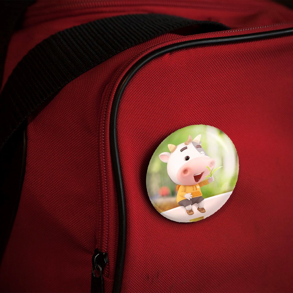 پیکسل 44 میلی متری گاو خندالو با روکش سلفون حرارتی مات مخملی ضدخش و قطعه پشتی رنگی تولید شده است.پلاستیکی پشت پیکسل با سوزن یک تکه ثابت و بدون لغزش و جا به جایی، ایستایی بسیار بهتری نسبت به پشتی فلزی پیکسل دارند که این مهم در تولید این محصول نیز رعایت شده است.