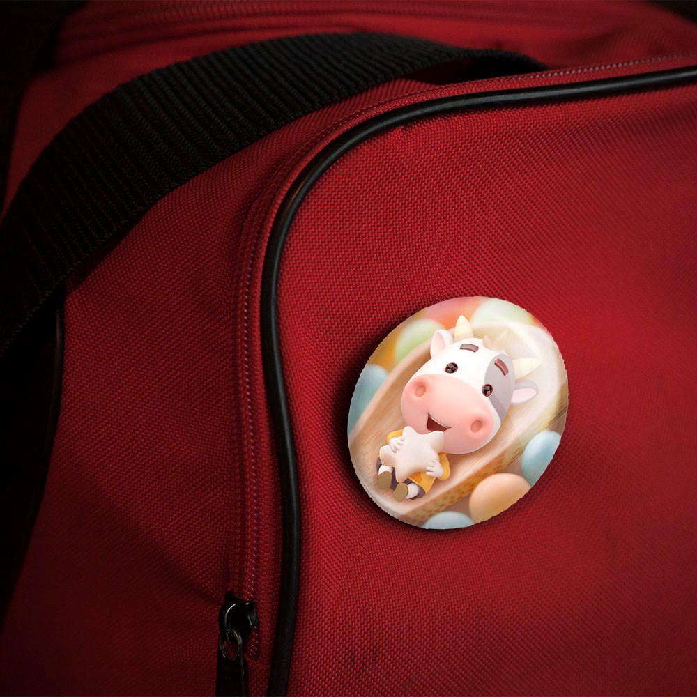 پیکسل 44 میلی متری گاو خندالو با روکش سلفون حرارتی مات مخملی ضدخش و قطعه پشتی رنگی تولید شده است.پلاستیکی پشت پیکسل با سوزن یک تکه ثابت و بدون لغزش و جا به جایی، ایستایی بسیار بهتری نسبت به پشتی فلزی پیکسل دارند که این مهم در تولید این محصول نیز رعایت شده است.