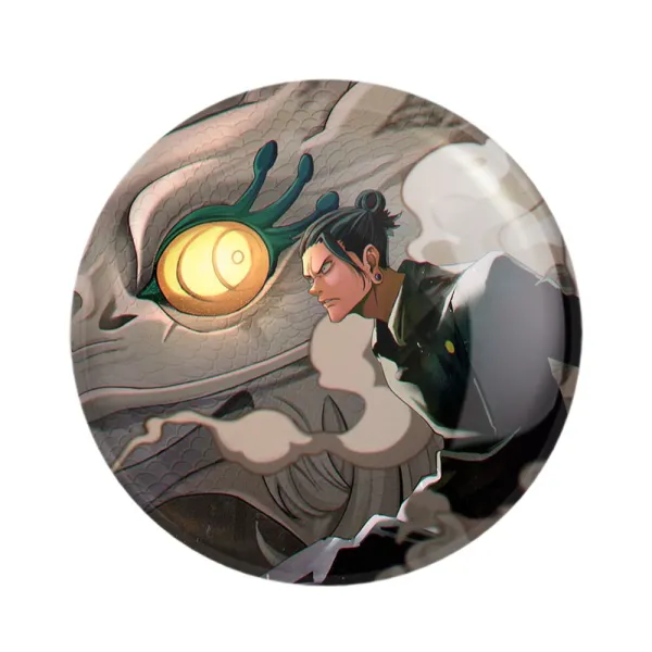 پیکسل 44 میلی متری گتو انیمه جوجوتسو کایزن Jujutsu Kaisen خندالو با روکش سلفون حرارتی مات مخملی ضدخش و قطعه پشتی رنگی تولید شده است.پلاستیکی پشت پیکسل با سوزن یک تکه ثابت و بدون لغزش و جا به جایی، ایستایی بسیار بهتری نسبت به پشتی فلزی پیکسل دارند که این مهم در تولید این محصول نیز رعایت شده است.