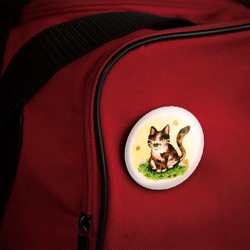 پیکسل 44 میلی متری گربه حیوانات بامزه خندالو با روکش سلفون حرارتی مات مخملی ضدخش و قطعه پشتی رنگی تولید شده است.پلاستیکی پشت پیکسل با سوزن یک تکه ثابت و بدون لغزش و جا به جایی، ایستایی بسیار بهتری نسبت به پشتی فلزی پیکسل دارند که این مهم در تولید این محصول نیز رعایت شده است.