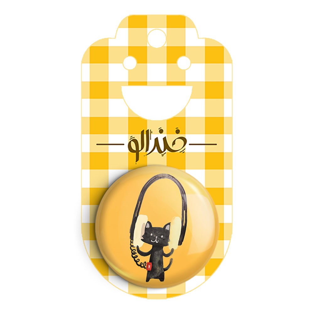 پیکسل 44 میلی متری گربه خندالو با روکش سلفون حرارتی مات مخملی ضدخش و قطعه پشتی رنگی تولید شده است.پلاستیکی پشت پیکسل با سوزن یک تکه ثابت و بدون لغزش و جا به جایی، ایستایی بسیار بهتری نسبت به پشتی فلزی پیکسل دارند که این مهم در تولید این محصول نیز رعایت شده است.