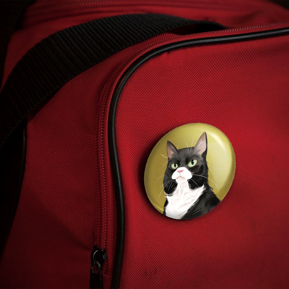 پیکسل 44 میلی متری گربه خندالو با روکش سلفون حرارتی مات مخملی ضدخش و قطعه پشتی رنگی تولید شده است.پلاستیکی پشت پیکسل با سوزن یک تکه ثابت و بدون لغزش و جا به جایی، ایستایی بسیار بهتری نسبت به پشتی فلزی پیکسل دارند که این مهم در تولید این محصول نیز رعایت شده است.