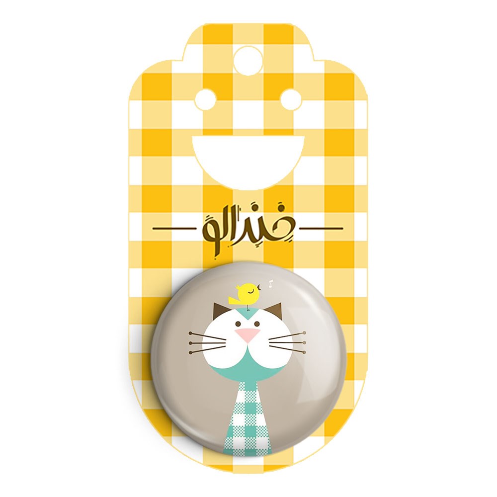 پیکسل 44 میلی متری گربه خندالو با روکش سلفون حرارتی مات مخملی ضدخش و قطعه پشتی رنگی تولید شده است.پلاستیکی پشت پیکسل با سوزن یک تکه ثابت و بدون لغزش و جا به جایی، ایستایی بسیار بهتری نسبت به پشتی فلزی پیکسل دارند که این مهم در تولید این محصول نیز رعایت شده است.