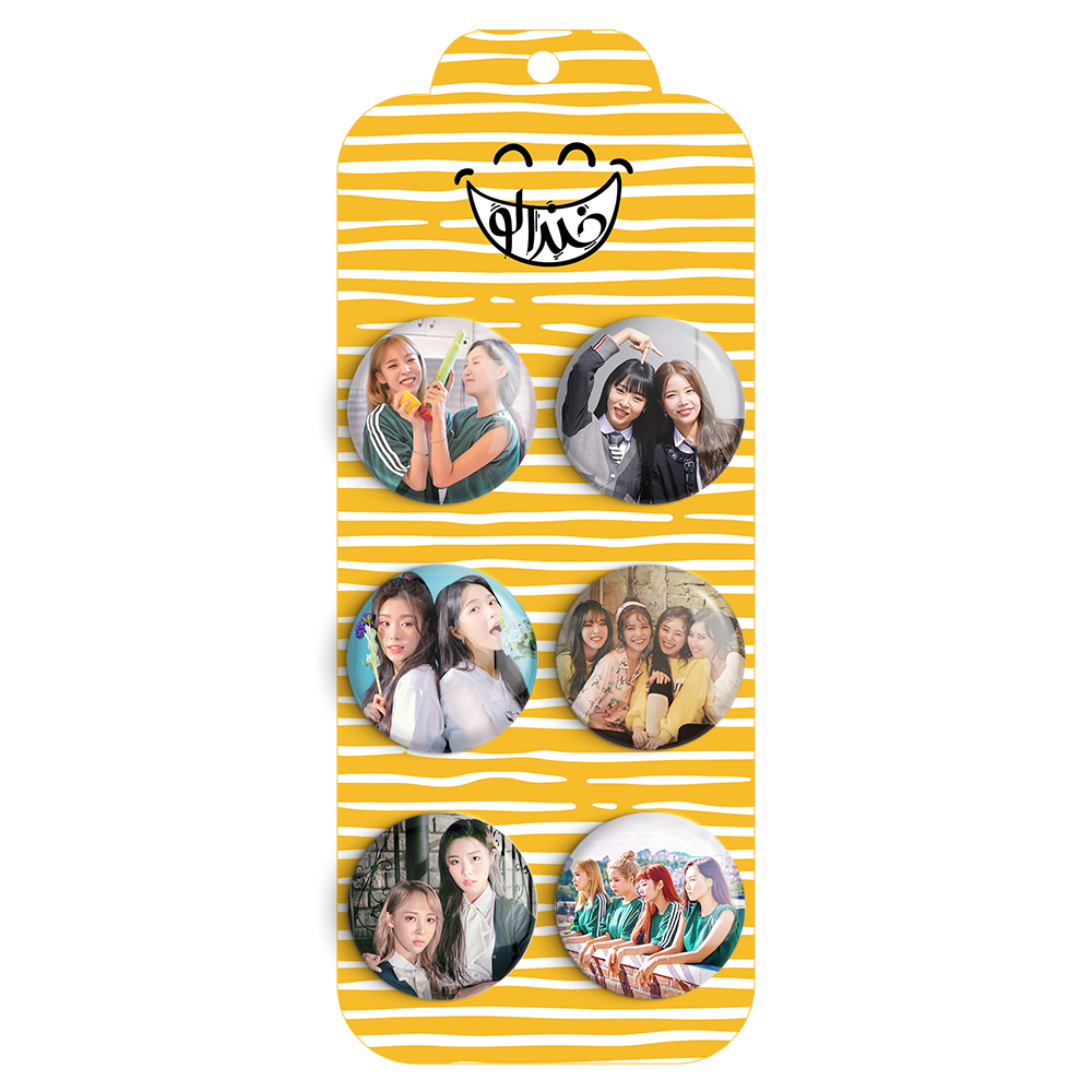 مجموعه 6 عددی پیکسل خندالو طرح گروهی (Mamamoo) با روکش سلفون حرارتی براق ضدخش و قطعه پشتی رنگی تولید شده است. قطعات پشتی از میان 6 رنگ سفید، مشکی، صورتی، زرد، آبی و قرمز که با توجه به نوع و رنگبندی طرح روی پیکسل انتخاب شده اند تولید می شود و در هر بسته بندی مطابق عکس محصول می باشد.