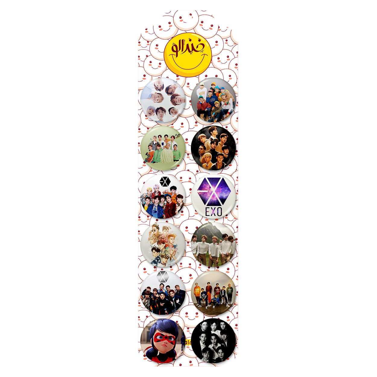 پک 12 عددی پیکسل خندالو طرح گروه اکسو (EXO) با روکش سلفون حرارتی براق ضدخش و قطعه پشتی رنگی تولید شده است. قطعات پشتی از میان 6 رنگ سفید، مشکی، صورتی، زرد، آبی و قرمز که با توجه به نوع و رنگبندی طرح روی پیکسل انتخاب شده اند تولید می شود و در هر بسته بندی مطابق عکس محصول می باشد. قطعات پلاستیکی پشت پیکسل با سوزن یک تکه ثابت و بدون لغزش و جا به جایی، ایستایی بسیار بهتری نسبت به پشتی فلزی پیکسل دارند که این مهم در تولید این محصول نیز رعایت شده است.