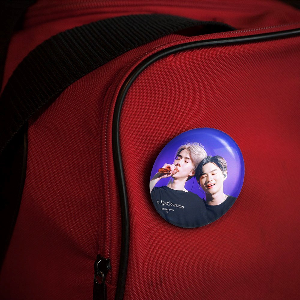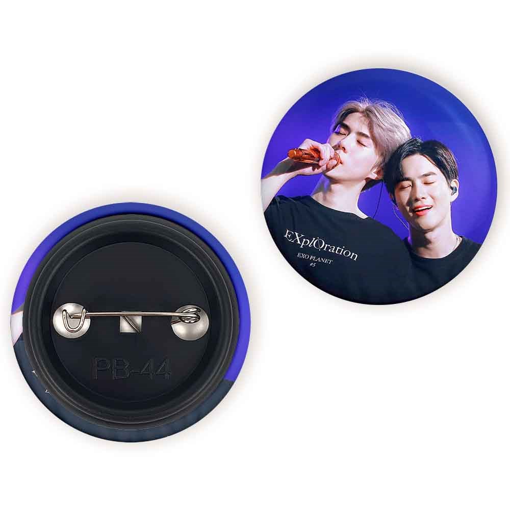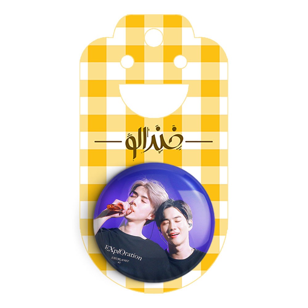 پیکسل 44 میلی متری گروه اکسو EXO خندالو با روکش سلفون حرارتی مات مخملی ضدخش و قطعه پشتی رنگی تولید شده است.پلاستیکی پشت پیکسل با سوزن یک تکه ثابت و بدون لغزش و جا به جایی، ایستایی بسیار بهتری نسبت به پشتی فلزی پیکسل دارند که این مهم در تولید این محصول نیز رعایت شده است.