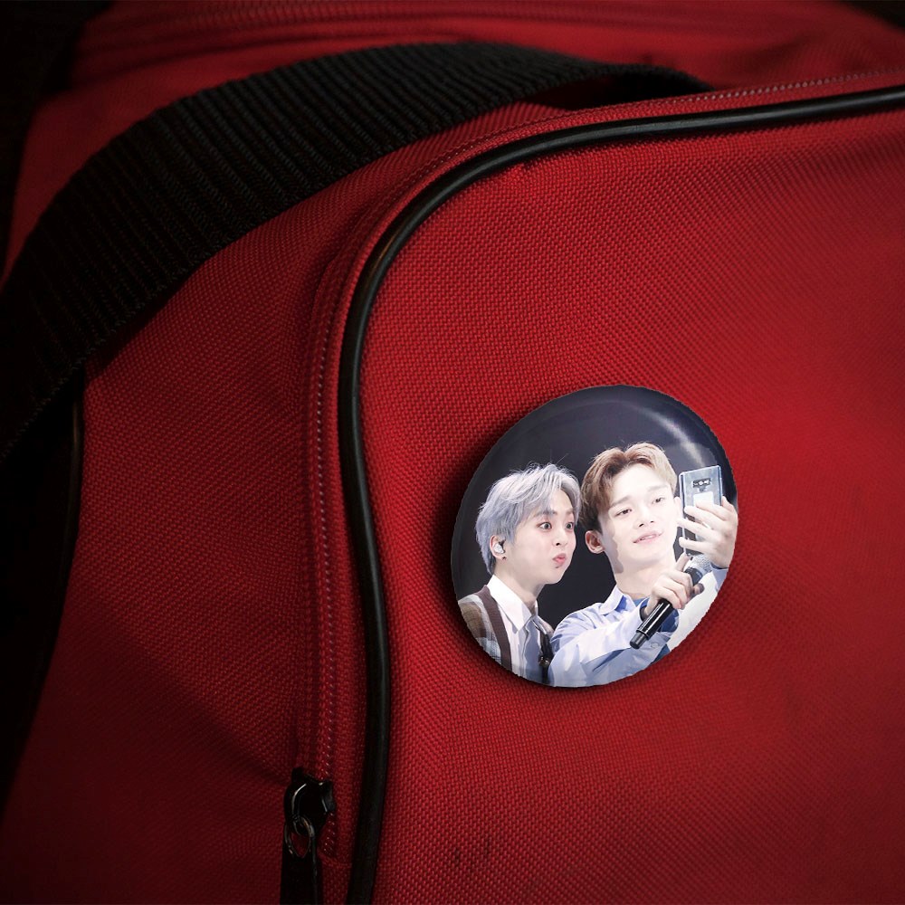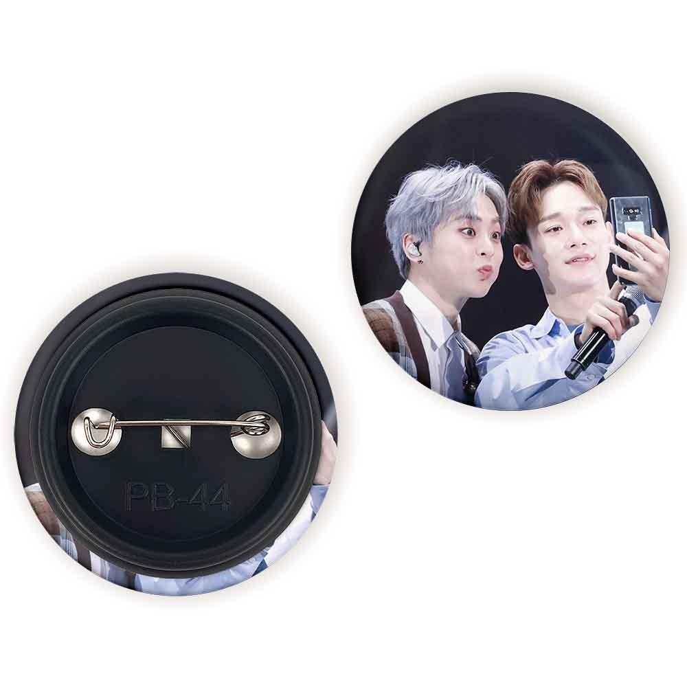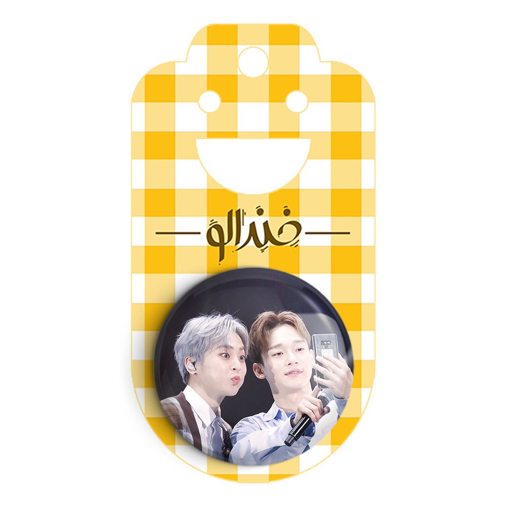 پیکسل 44 میلی متری گروه اکسو EXO خندالو با روکش سلفون حرارتی مات مخملی ضدخش و قطعه پشتی رنگی تولید شده است.پلاستیکی پشت پیکسل با سوزن یک تکه ثابت و بدون لغزش و جا به جایی، ایستایی بسیار بهتری نسبت به پشتی فلزی پیکسل دارند که این مهم در تولید این محصول نیز رعایت شده است.