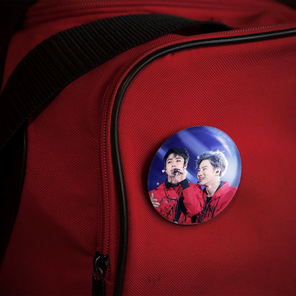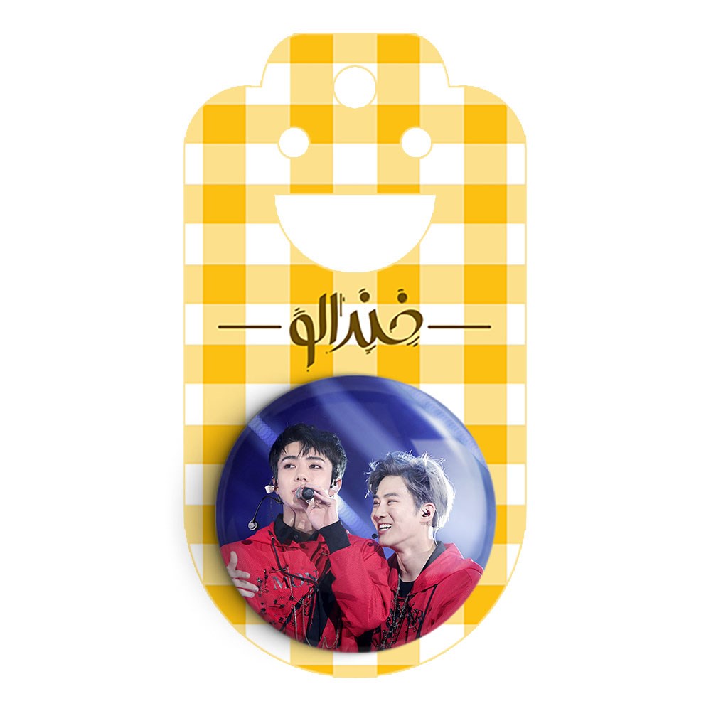 پیکسل 44 میلی متری گروه اکسو EXO خندالو با روکش سلفون حرارتی مات مخملی ضدخش و قطعه پشتی رنگی تولید شده است.پلاستیکی پشت پیکسل با سوزن یک تکه ثابت و بدون لغزش و جا به جایی، ایستایی بسیار بهتری نسبت به پشتی فلزی پیکسل دارند که این مهم در تولید این محصول نیز رعایت شده است.