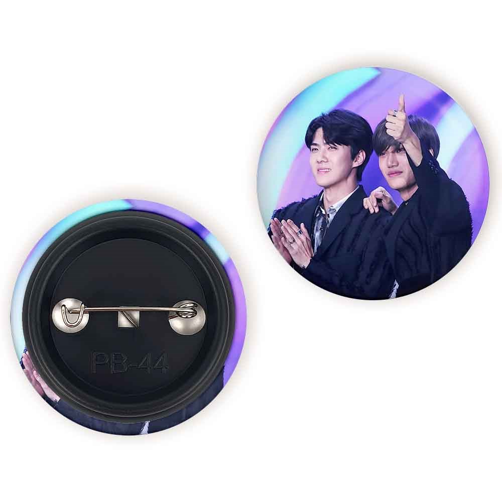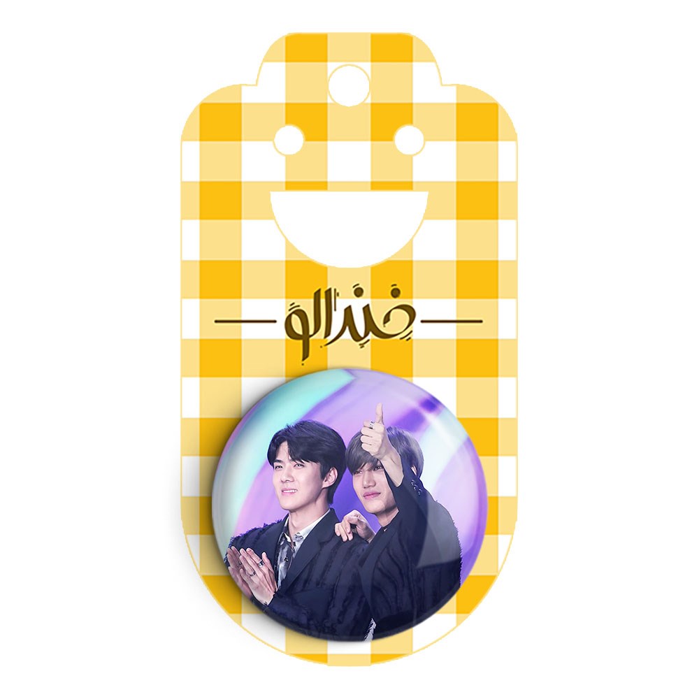 پیکسل 44 میلی متری گروه اکسو EXO خندالو با روکش سلفون حرارتی مات مخملی ضدخش و قطعه پشتی رنگی تولید شده است.پلاستیکی پشت پیکسل با سوزن یک تکه ثابت و بدون لغزش و جا به جایی، ایستایی بسیار بهتری نسبت به پشتی فلزی پیکسل دارند که این مهم در تولید این محصول نیز رعایت شده است.