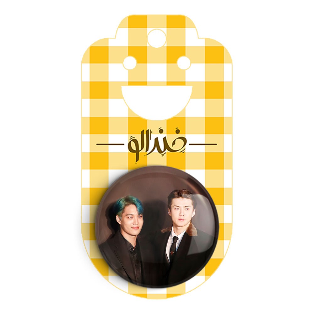 پیکسل 44 میلی متری گروه اکسو EXO خندالو با روکش سلفون حرارتی مات مخملی ضدخش و قطعه پشتی رنگی تولید شده است.پلاستیکی پشت پیکسل با سوزن یک تکه ثابت و بدون لغزش و جا به جایی، ایستایی بسیار بهتری نسبت به پشتی فلزی پیکسل دارند که این مهم در تولید این محصول نیز رعایت شده است.