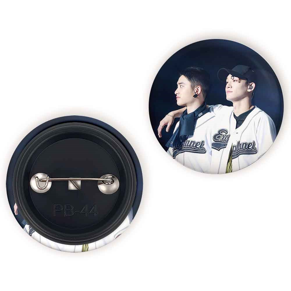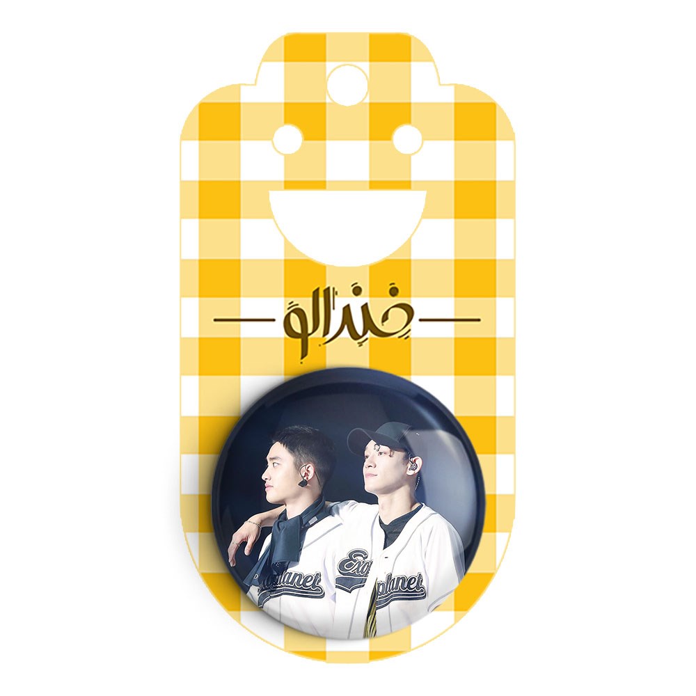 پیکسل 44 میلی متری گروه اکسو EXO خندالو با روکش سلفون حرارتی مات مخملی ضدخش و قطعه پشتی رنگی تولید شده است.پلاستیکی پشت پیکسل با سوزن یک تکه ثابت و بدون لغزش و جا به جایی، ایستایی بسیار بهتری نسبت به پشتی فلزی پیکسل دارند که این مهم در تولید این محصول نیز رعایت شده است.