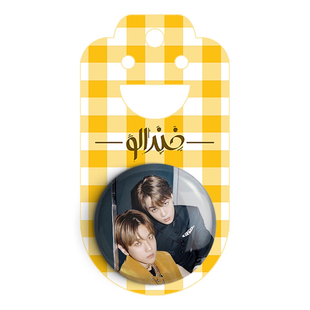 پیکسل 44 میلی متری گروه اکسو EXO خندالو با روکش سلفون حرارتی مات مخملی ضدخش و قطعه پشتی رنگی تولید شده است.پلاستیکی پشت پیکسل با سوزن یک تکه ثابت و بدون لغزش و جا به جایی، ایستایی بسیار بهتری نسبت به پشتی فلزی پیکسل دارند که این مهم در تولید این محصول نیز رعایت شده است.