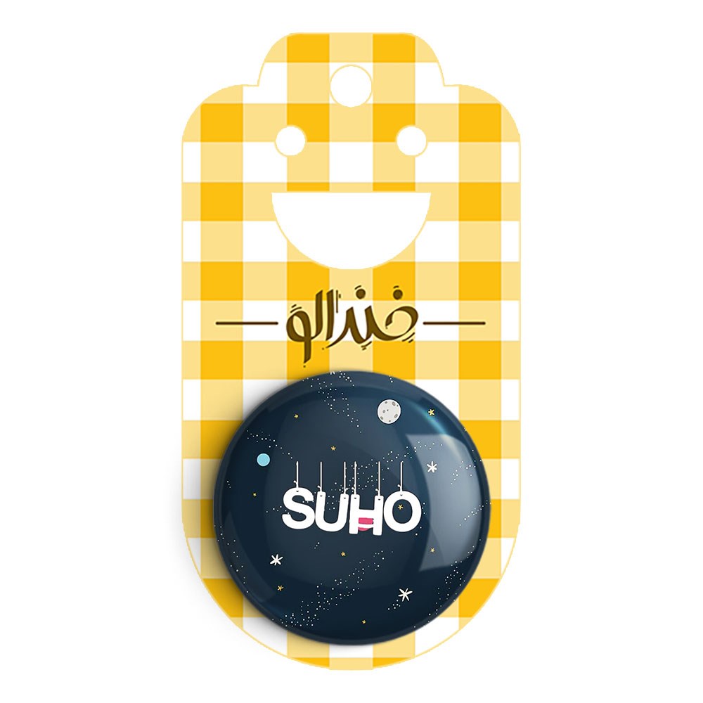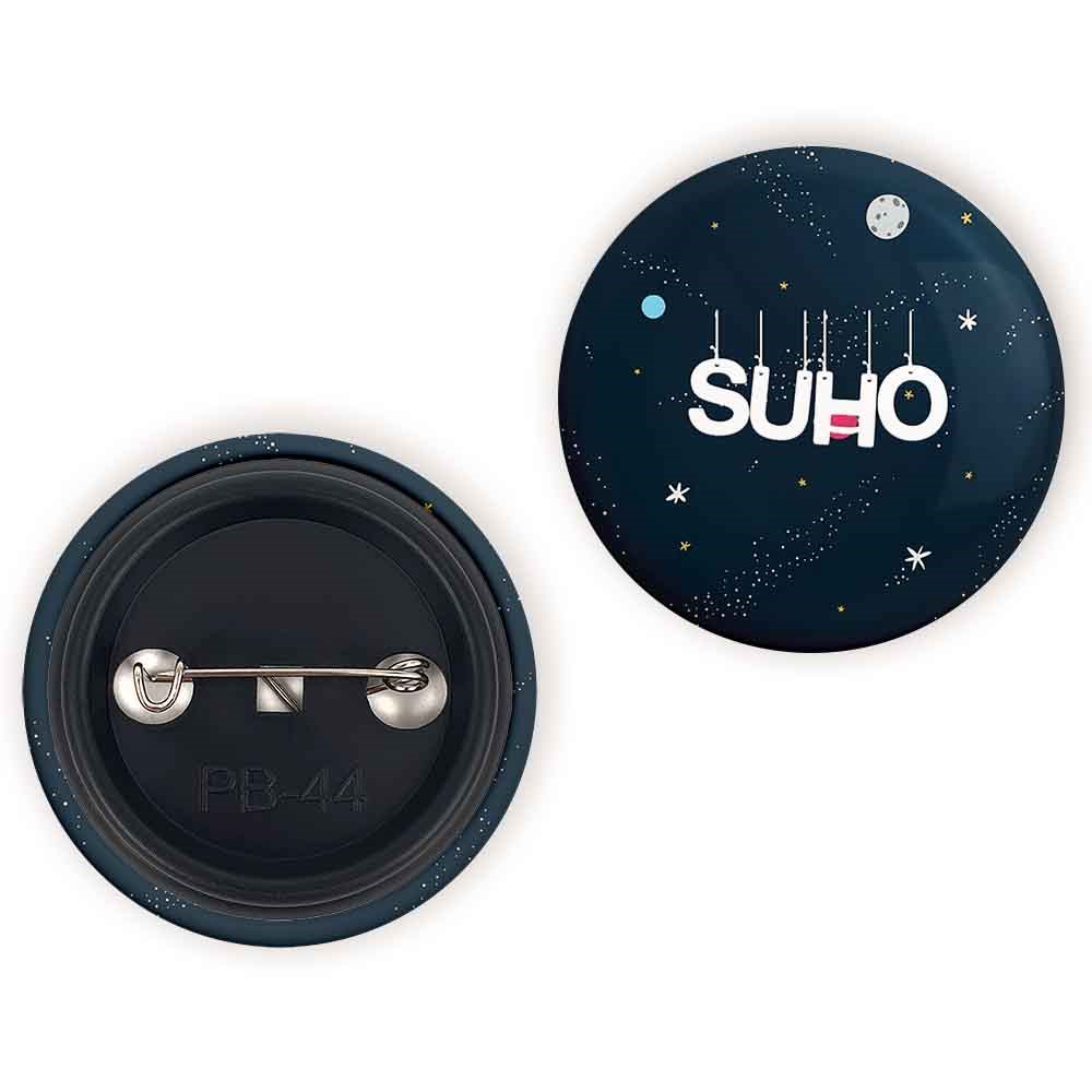 پیکسل 44 میلی متری گروه اکسو EXO خندالو با روکش سلفون حرارتی مات مخملی ضدخش و قطعه پشتی رنگی تولید شده است.پلاستیکی پشت پیکسل با سوزن یک تکه ثابت و بدون لغزش و جا به جایی، ایستایی بسیار بهتری نسبت به پشتی فلزی پیکسل دارند که این مهم در تولید این محصول نیز رعایت شده است.