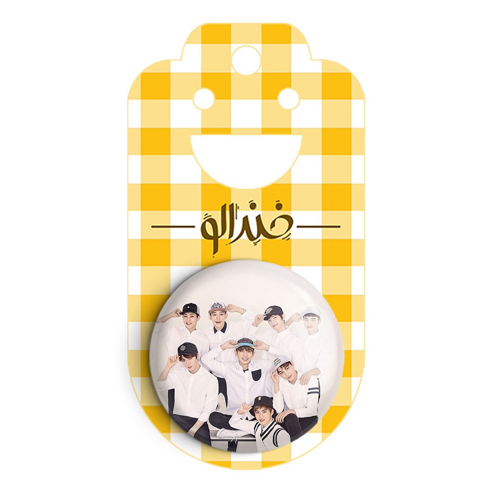 پیکسل 44 میلی متری گروه اکسو EXO خندالو با روکش سلفون حرارتی مات مخملی ضدخش و قطعه پشتی رنگی تولید شده است.پلاستیکی پشت پیکسل با سوزن یک تکه ثابت و بدون لغزش و جا به جایی، ایستایی بسیار بهتری نسبت به پشتی فلزی پیکسل دارند که این مهم در تولید این محصول نیز رعایت شده است.