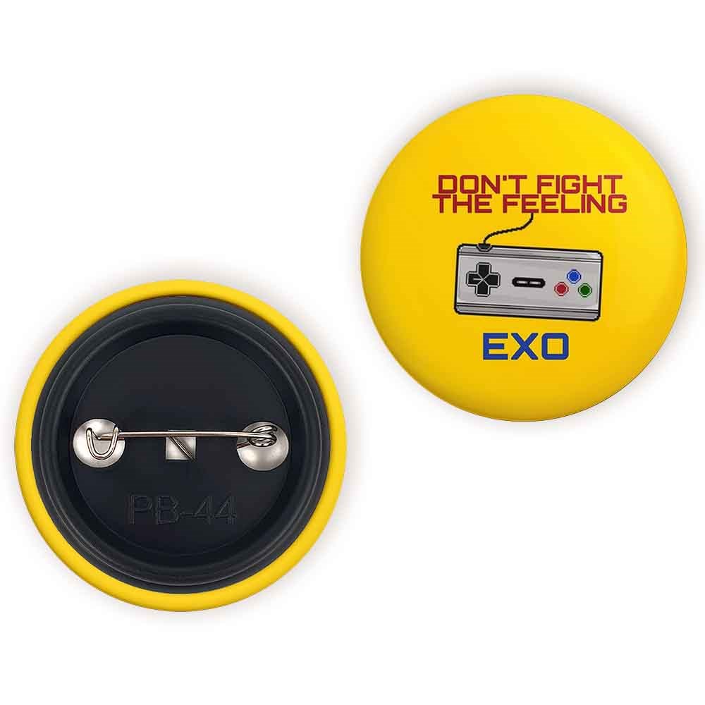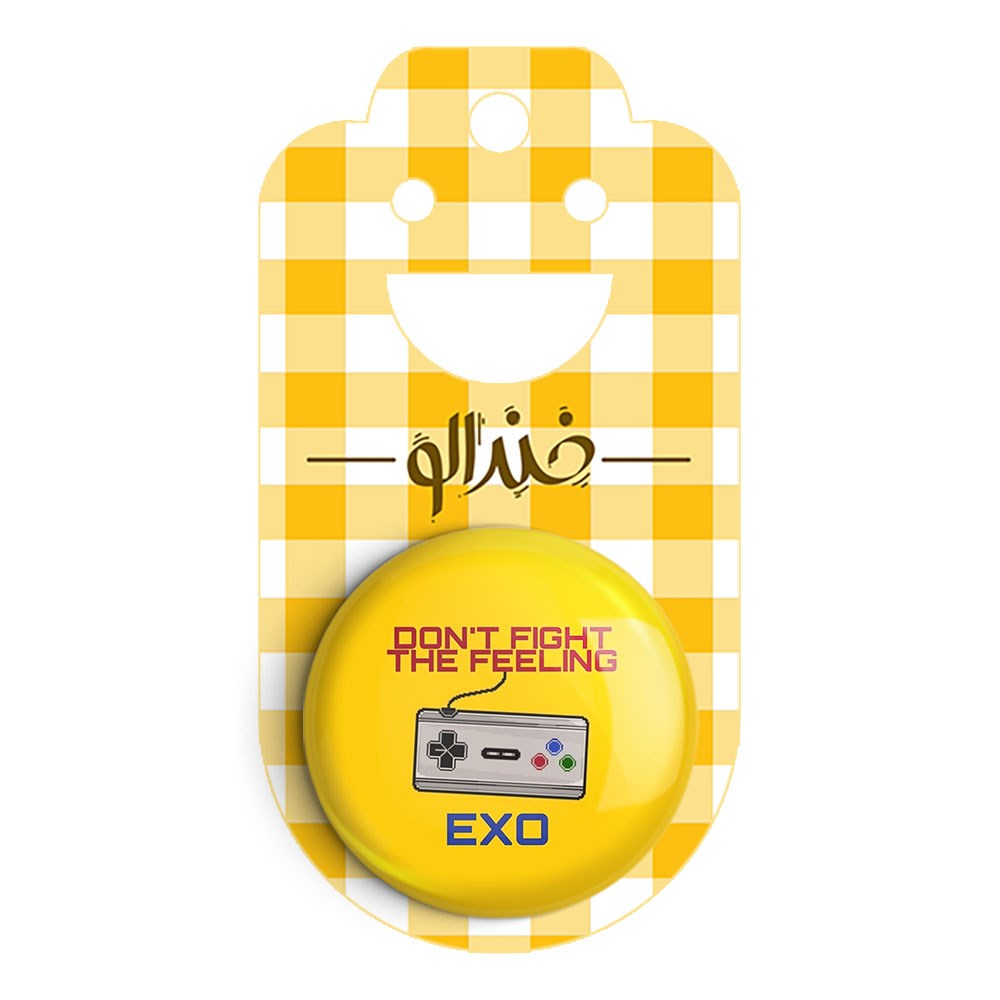 پیکسل 44 میلی متری گروه اکسو EXO خندالو با روکش سلفون حرارتی مات مخملی ضدخش و قطعه پشتی رنگی تولید شده است.پلاستیکی پشت پیکسل با سوزن یک تکه ثابت و بدون لغزش و جا به جایی، ایستایی بسیار بهتری نسبت به پشتی فلزی پیکسل دارند که این مهم در تولید این محصول نیز رعایت شده است.