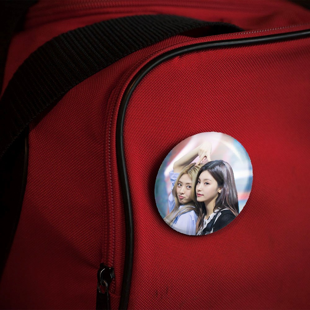 پیکسل 44 میلی متری گروه ایتزی ITZY خندالو با روکش سلفون حرارتی مات مخملی ضدخش و قطعه پشتی رنگی تولید شده است.پلاستیکی پشت پیکسل با سوزن یک تکه ثابت و بدون لغزش و جا به جایی، ایستایی بسیار بهتری نسبت به پشتی فلزی پیکسل دارند که این مهم در تولید این محصول نیز رعایت شده است.
