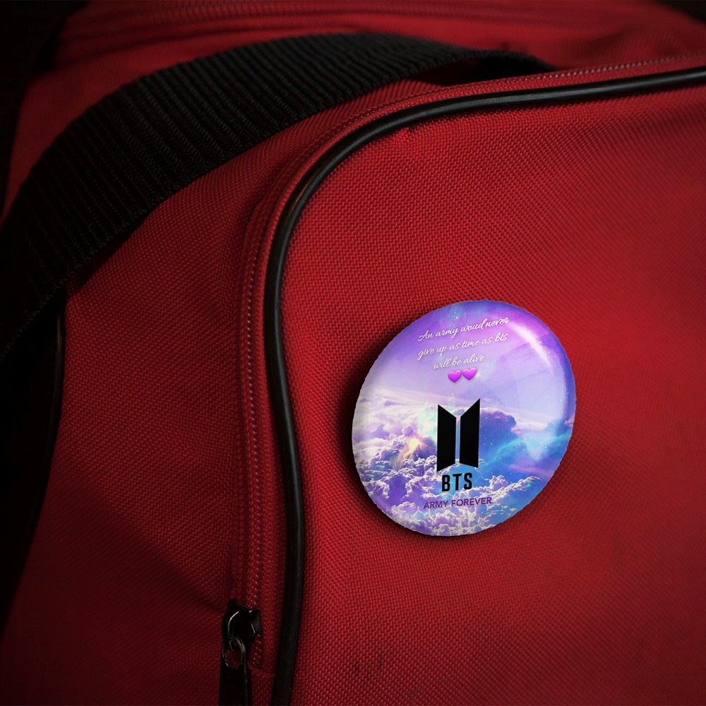 پیکسل 44 میلی متری گروه بی تی اس BTS خندالو با روکش سلفون حرارتی مات مخملی ضدخش و قطعه پشتی رنگی تولید شده است.پلاستیکی پشت پیکسل با سوزن یک تکه ثابت و بدون لغزش و جا به جایی، ایستایی بسیار بهتری نسبت به پشتی فلزی پیکسل دارند که این مهم در تولید این محصول نیز رعایت شده است.