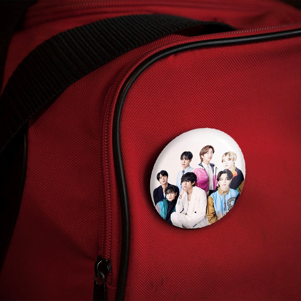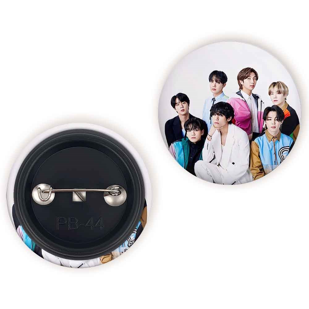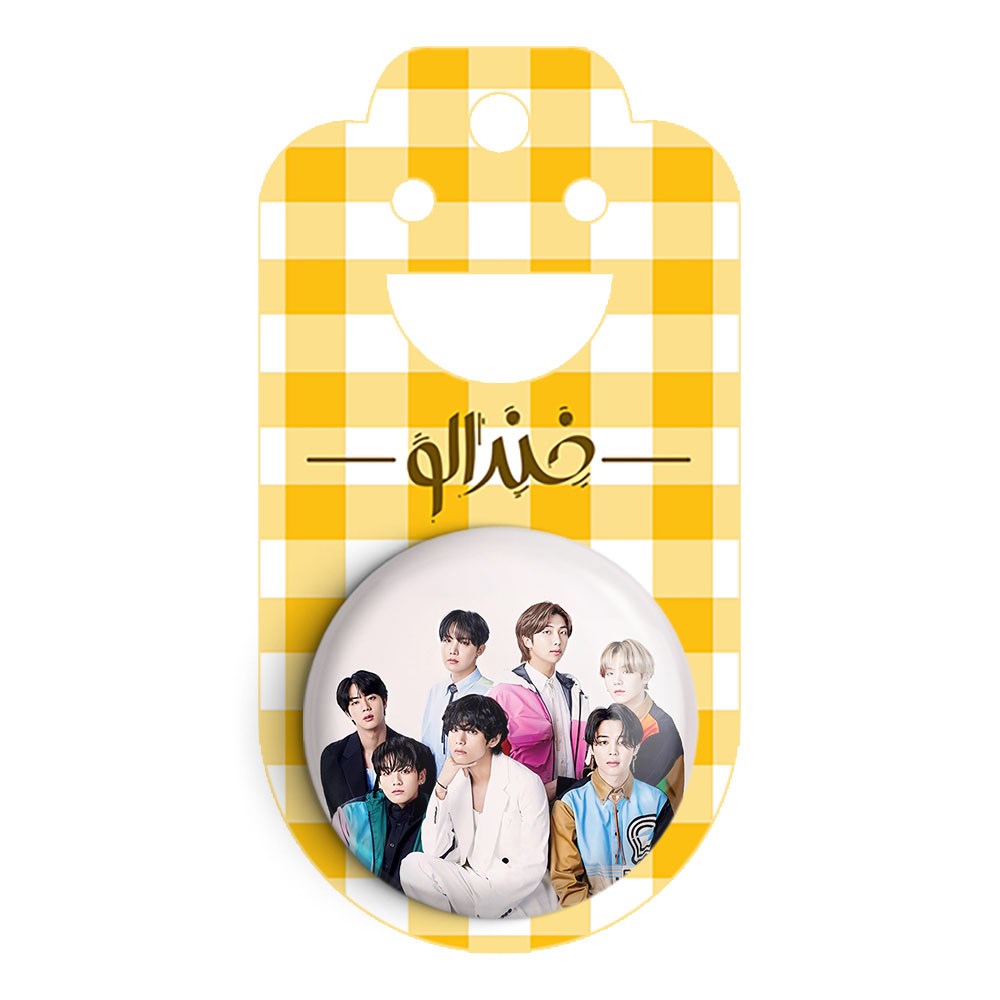 پیکسل 44 میلی متری گروه بی تی اس BTS خندالو با روکش سلفون حرارتی مات مخملی ضدخش و قطعه پشتی رنگی تولید شده است.پلاستیکی پشت پیکسل با سوزن یک تکه ثابت و بدون لغزش و جا به جایی، ایستایی بسیار بهتری نسبت به پشتی فلزی پیکسل دارند که این مهم در تولید این محصول نیز رعایت شده است.