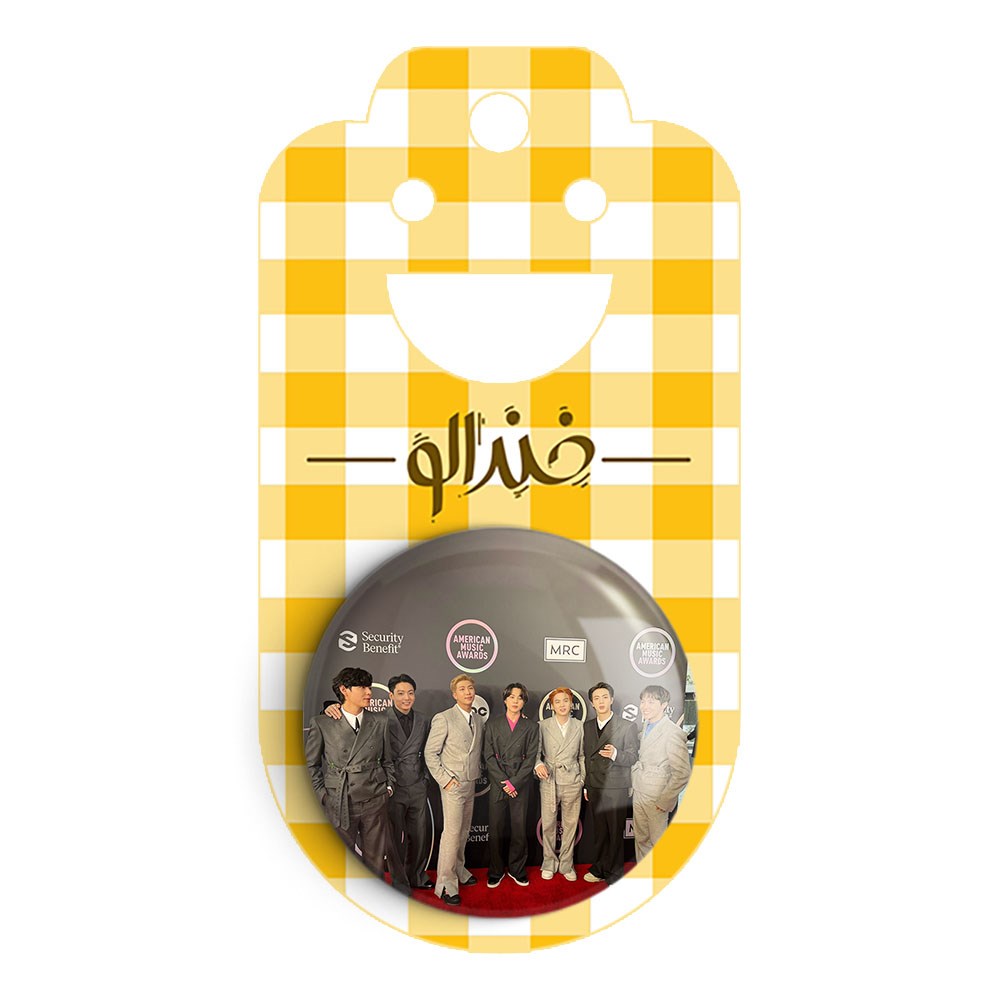پیکسل 44 میلی متری گروه بی تی اس BTS خندالو با روکش سلفون حرارتی مات مخملی ضدخش و قطعه پشتی رنگی تولید شده است.پلاستیکی پشت پیکسل با سوزن یک تکه ثابت و بدون لغزش و جا به جایی، ایستایی بسیار بهتری نسبت به پشتی فلزی پیکسل دارند که این مهم در تولید این محصول نیز رعایت شده است.