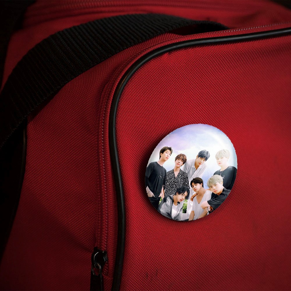 پیکسل 44 میلی متری گروه بی تی اس BTS خندالو با روکش سلفون حرارتی مات مخملی ضدخش و قطعه پشتی رنگی تولید شده است.پلاستیکی پشت پیکسل با سوزن یک تکه ثابت و بدون لغزش و جا به جایی، ایستایی بسیار بهتری نسبت به پشتی فلزی پیکسل دارند که این مهم در تولید این محصول نیز رعایت شده است.