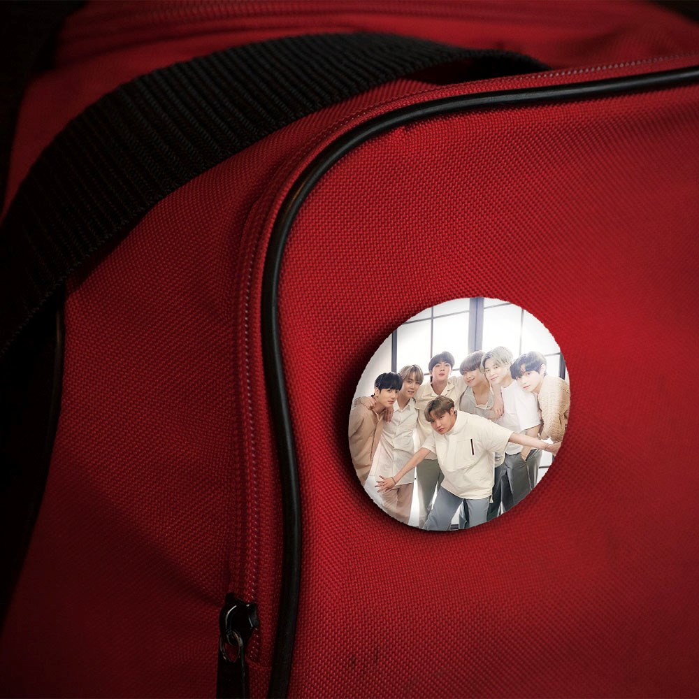 پیکسل 44 میلی متری گروه بی تی اس BTS خندالو با روکش سلفون حرارتی مات مخملی ضدخش و قطعه پشتی رنگی تولید شده است.پلاستیکی پشت پیکسل با سوزن یک تکه ثابت و بدون لغزش و جا به جایی، ایستایی بسیار بهتری نسبت به پشتی فلزی پیکسل دارند که این مهم در تولید این محصول نیز رعایت شده است.
