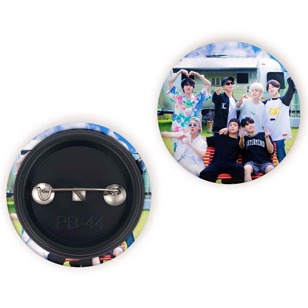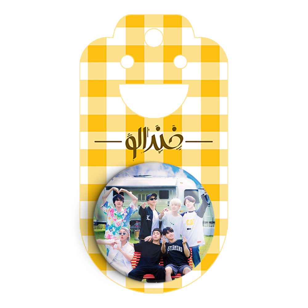 پیکسل 44 میلی متری گروه بی تی اس BTS خندالو با روکش سلفون حرارتی مات مخملی ضدخش و قطعه پشتی رنگی تولید شده است.پلاستیکی پشت پیکسل با سوزن یک تکه ثابت و بدون لغزش و جا به جایی، ایستایی بسیار بهتری نسبت به پشتی فلزی پیکسل دارند که این مهم در تولید این محصول نیز رعایت شده است.