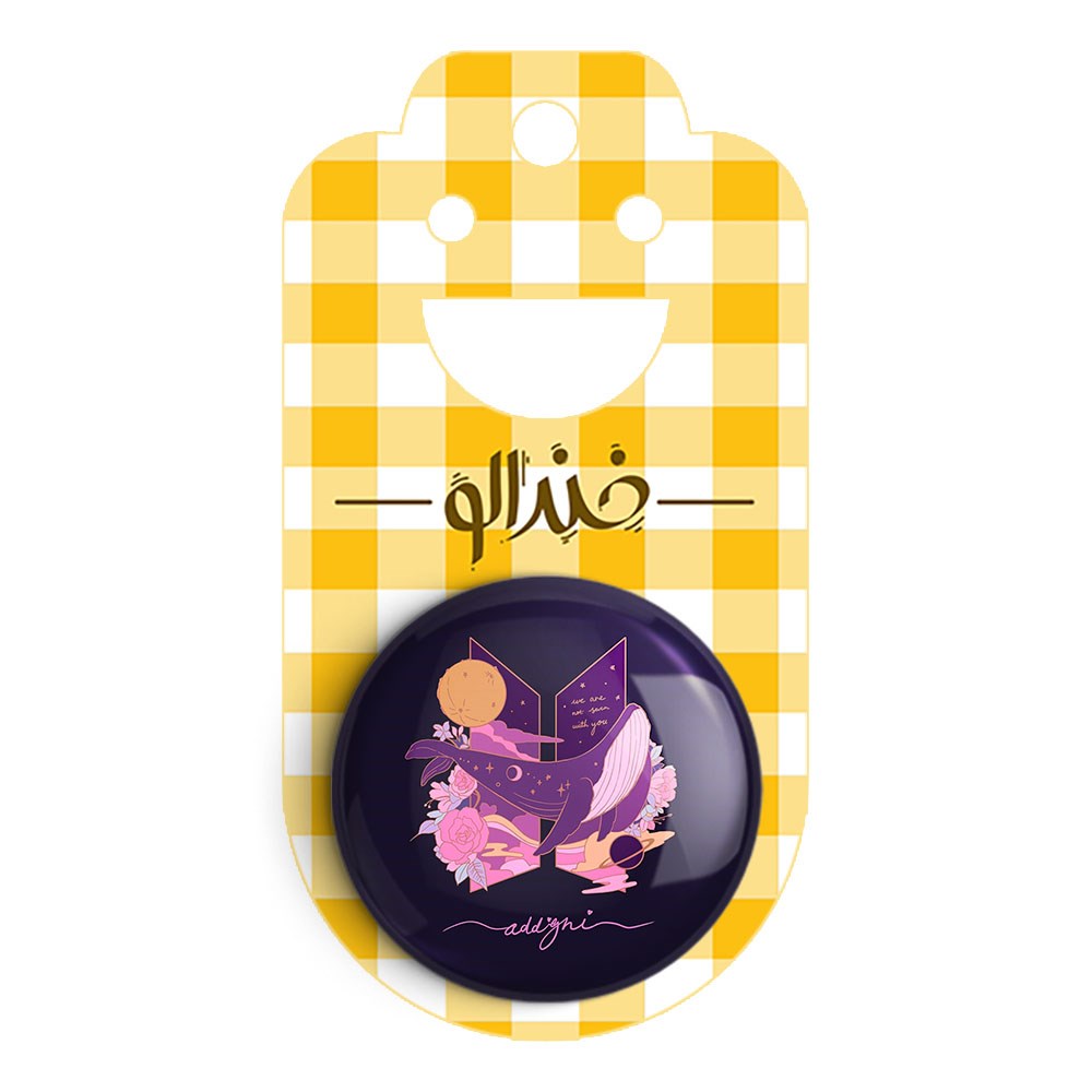 پیکسل 44 میلی متری گروه بی تی اس BTS خندالو با روکش سلفون حرارتی مات مخملی ضدخش و قطعه پشتی رنگی تولید شده است.پلاستیکی پشت پیکسل با سوزن یک تکه ثابت و بدون لغزش و جا به جایی، ایستایی بسیار بهتری نسبت به پشتی فلزی پیکسل دارند که این مهم در تولید این محصول نیز رعایت شده است.