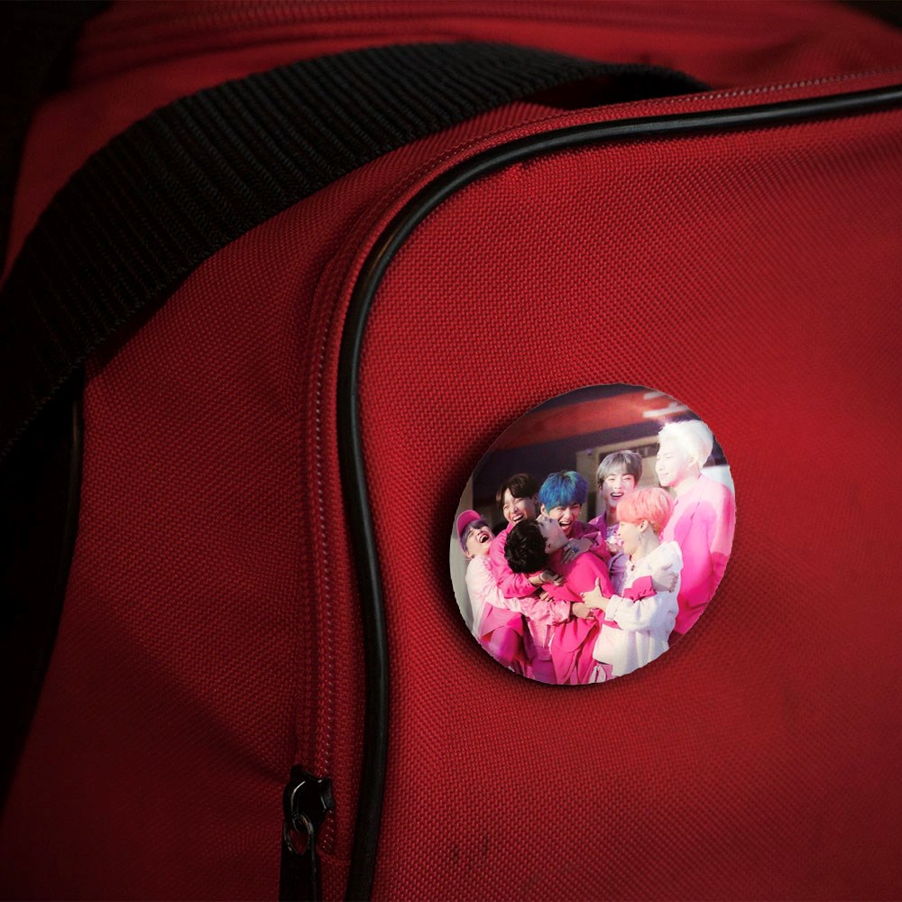 پیکسل 44 میلی متری گروه بی تی اس BTS خندالو با روکش سلفون حرارتی مات مخملی ضدخش و قطعه پشتی رنگی تولید شده است.پلاستیکی پشت پیکسل با سوزن یک تکه ثابت و بدون لغزش و جا به جایی، ایستایی بسیار بهتری نسبت به پشتی فلزی پیکسل دارند که این مهم در تولید این محصول نیز رعایت شده است.