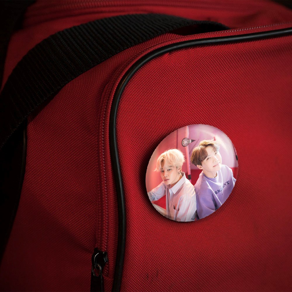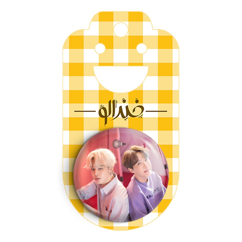 پیکسل 44 میلی متری گروه بی تی اس BTS خندالو با روکش سلفون حرارتی مات مخملی ضدخش و قطعه پشتی رنگی تولید شده است.پلاستیکی پشت پیکسل با سوزن یک تکه ثابت و بدون لغزش و جا به جایی، ایستایی بسیار بهتری نسبت به پشتی فلزی پیکسل دارند که این مهم در تولید این محصول نیز رعایت شده است.